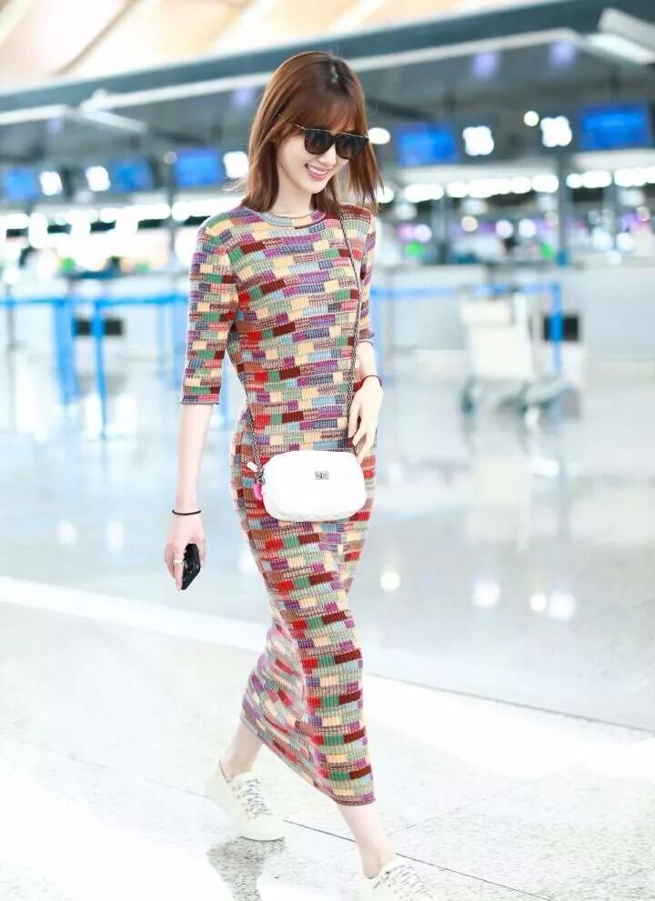 這條裙子搭配的就有點失敗了,是一條露肩的美中不足的是把毛曉彤腰間的贅肉都給露了出來,這樣看起來就有點尷尬了