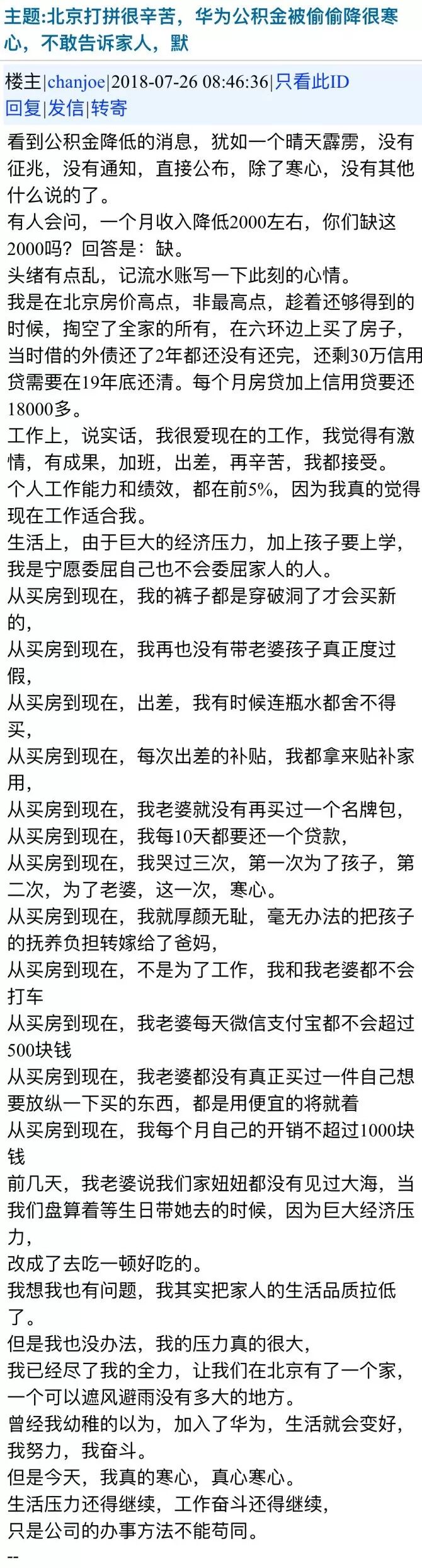 因為公積金的調整,他每個月收入低了2000元,正是因為這2000元,讓一個大男人落下了男兒淚,也讓他無奈到只能在網上訴苦。