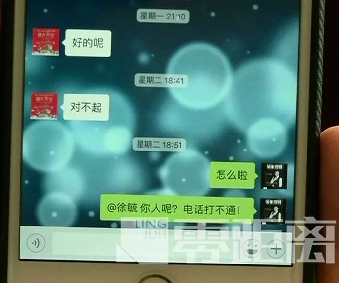 但是僅僅過了4天,6月5號傍晚,徐毓突然在一家三口的群里發了一條微信「對不起」,之後便失去了聯繫。