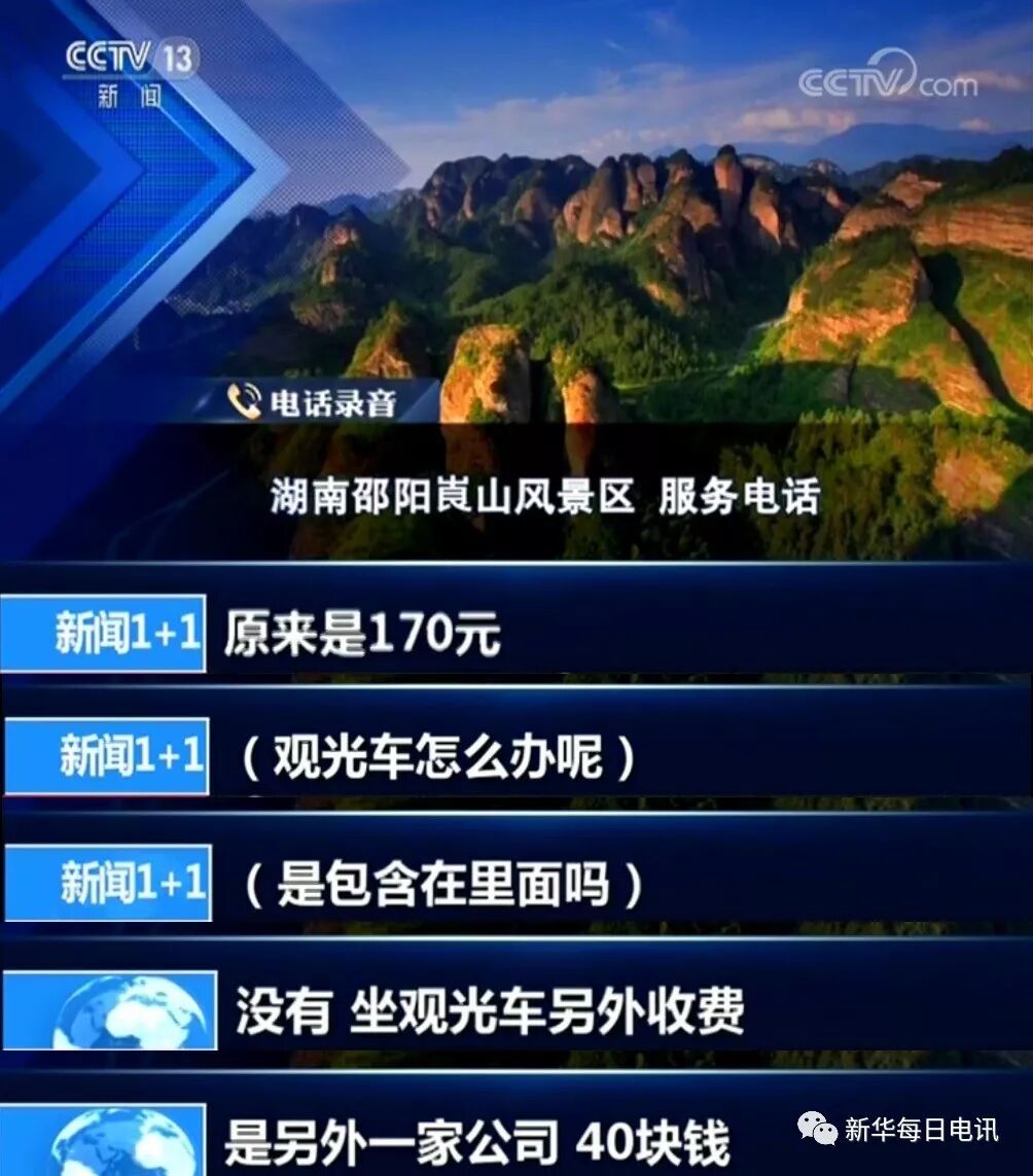 9月28日,《新華每日電訊》「調查·觀察」周刊以《告別「門票經濟」,景區要學會算「大帳」》為題,報導國家5A級景區——湖南崀山風景區門票從170元降到136元,原本免費乘坐的觀光車改為收費40元,總價不降反漲。報導發出後,崀山風景區迅速進行整改,取消景區觀光車收費。