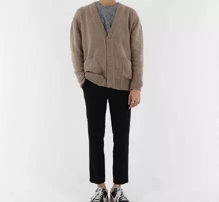 普通的開衫要穿出不同感覺,可以在褲子上花心思,