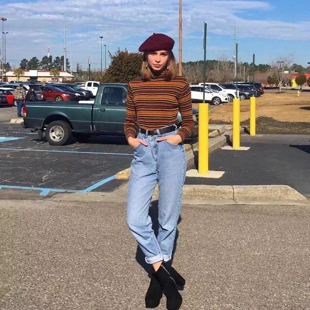 在五六十年代流行的倒三角剪裁、超高腰設計、寬鬆褲管的牛仔褲,很受當年的女生歡迎。