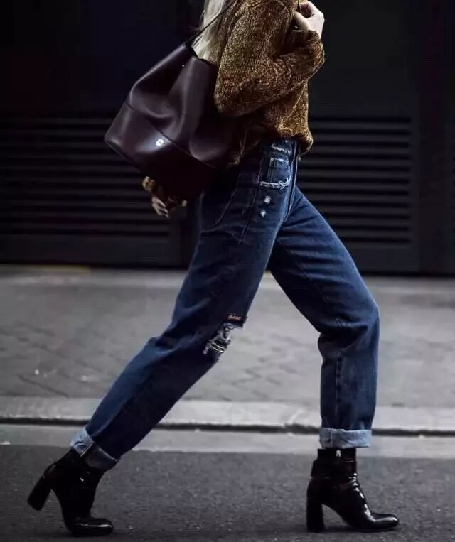 秋天必入的短靴,搭配媽媽褲就更好看了。