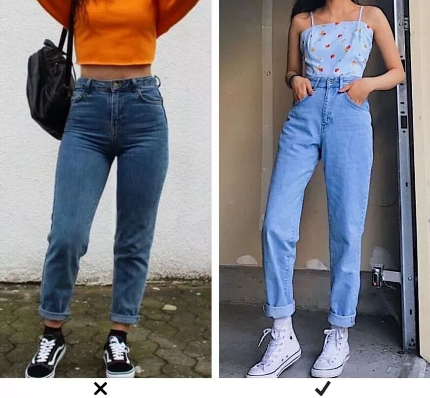 由於大腿部位特別寬鬆,所以媽媽褲要比緊身褲更能修飾粗腿。