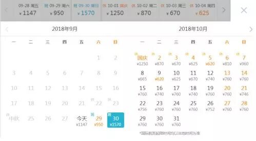 機票:價格最高點在9月30日