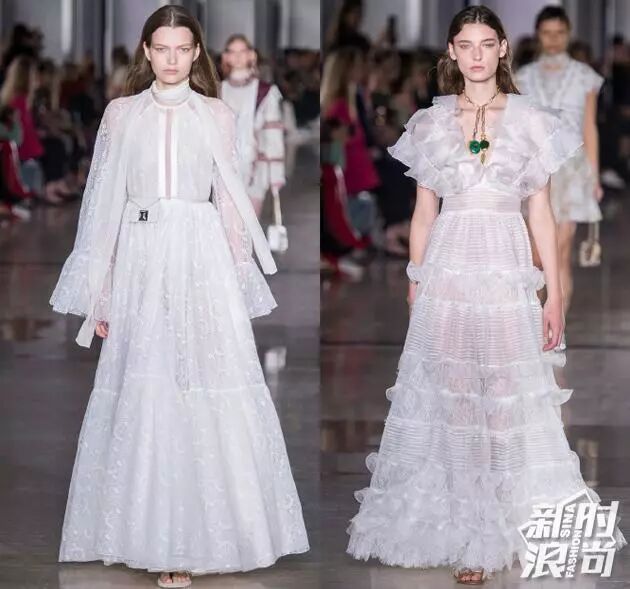 最後我們看看仙女品牌Giambattista Valli,本季2019春夏系列上的細節傳遞了設計師的思路,遠觀如同列印出的精美圖案全部來自手工刺繡,薄紗、蕾絲、荷葉邊等浪漫元素樣樣齊全,舒適的平底鞋仙美而舒適,兼顧了實用和美觀度。