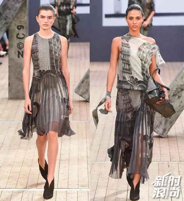 AKRIS 2019春夏大秀在充滿了工業感的秀場布景中開始,設計師本季將飄逸的裙裝成為本季的主打單品,纖薄的面料讓整個系列頗有動感。小深V的設計讓黑色襯衫與半裙的搭配更具性感魅力。