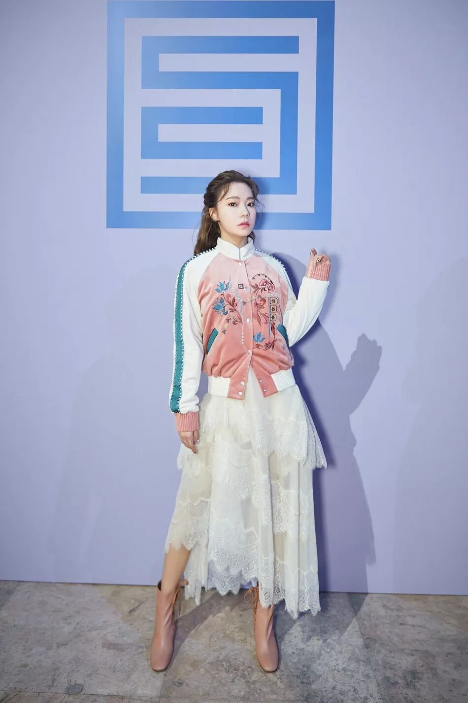 紫寧選擇了SHIATZYCHEN最新一季的重工刺繡風夾克上裝搭配黃色蕾絲長裙登場,既保留了品牌一貫的優雅和中國風同時又穿出年輕潮感,非常有紫寧自己的風格和態度。