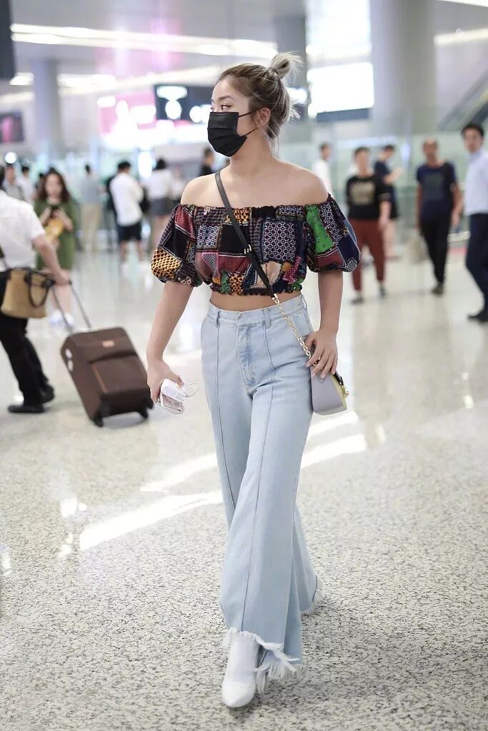 同樣是背心+闊腿褲的張鈞甯,知性女人味的白色鏤空背心搭配靛藍色牛仔闊腿褲和平底鞋,演繹了和張韶涵的背心闊腿褲完全不一樣的風格。