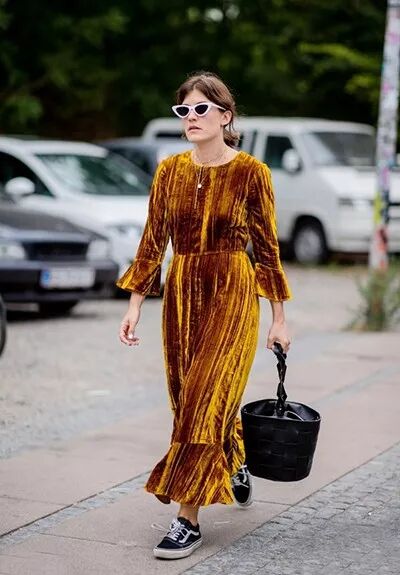 絲絨連衣裙也並不是那麼難以駕馭,只要掌握了上面那幾種技巧的話,秋天穿絲絨出街完全不是事兒。