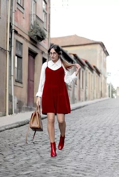 Slip dress絲絨裙+打底衫是最好的搭配方式,這種打底裙可以疊穿,這種穿法不會太暴露,也不會顯得保守。