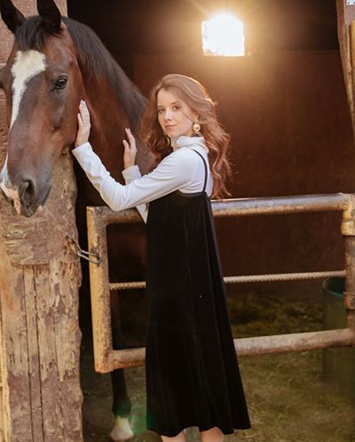 這種類型的絲絨裙需要注意的是配飾選擇一定要低調,為了避免出現同派系的撞搭會讓絲絨掉價之外,甜美比例也會失去平衡。