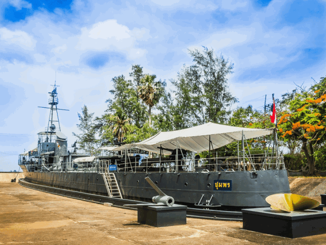 此外,這里還是早年親王曾經親自指揮過的「鑾王王家軍艦」展示的地方;是一艘於1975年退役、68米長,6.55米寬大型魚雷軍艦;由海軍把軍艦送給春蓬府在此展示。