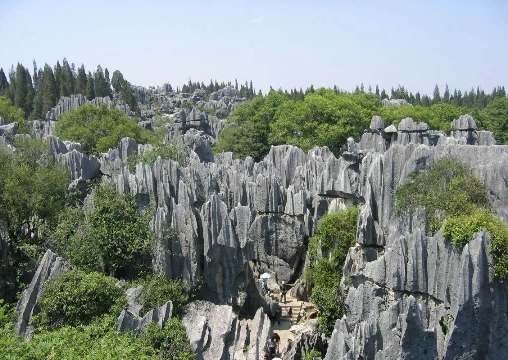 早餐後乘車返回昆明,參觀大小石林風景區【電瓶車】,石林風景區是中國巖溶地貌(也稱喀斯特地貌)比較集中的地區,景區由石林、乃古石林(黑松巖)、芝雲洞、長湖、大疊水(飛龍瀑)、圭山國家森林公園、月湖、奇風洞8個旅遊區組成,以雄、奇、險、秀、幽、奧、曠著稱。石林形成於2.7億年前,景區範圍廣袤,山光水色各具特色,石牙、峰叢、溶丘、溶洞、溶蝕湖、瀑布、地下河等景觀錯落有致。