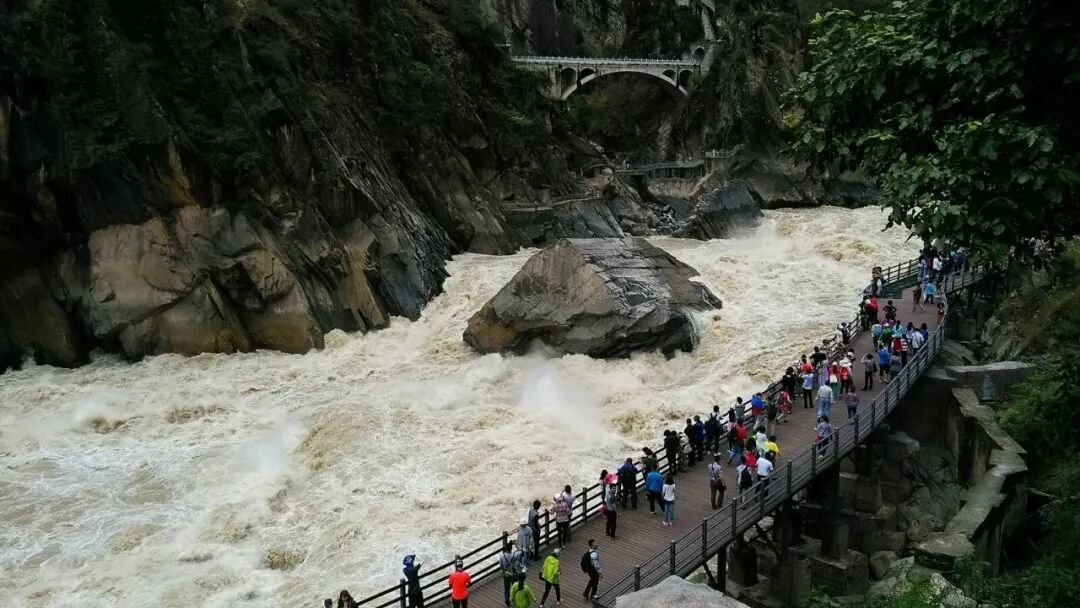 還會去到虎跳峽,它以「險」名天下,是中國最深的峽谷之一;虎跳峽位於香格里拉市虎跳峽鎮境內,距香格里拉市96公里,距麗江市80公里。在雲南省玉龍納西族自治縣(原麗江納西族自治縣)龍蟠鄉東北。峽谷長17千米,南岸玉龍雪山主峰海拔5596米,北岸中哈巴雪山海拔5396米,中間江流寬僅30-60米。虎跳峽的上峽口海拔1800米,下峽口海拔1630米,兩岸山嶺和江面相差2500-3000米,谷坡陡峭,蔚為壯觀。江流在峽內連續下跌7個陡坎,216米短距離落差。水勢洶湧,聲聞數里,為世界上最深的大峽谷之一。