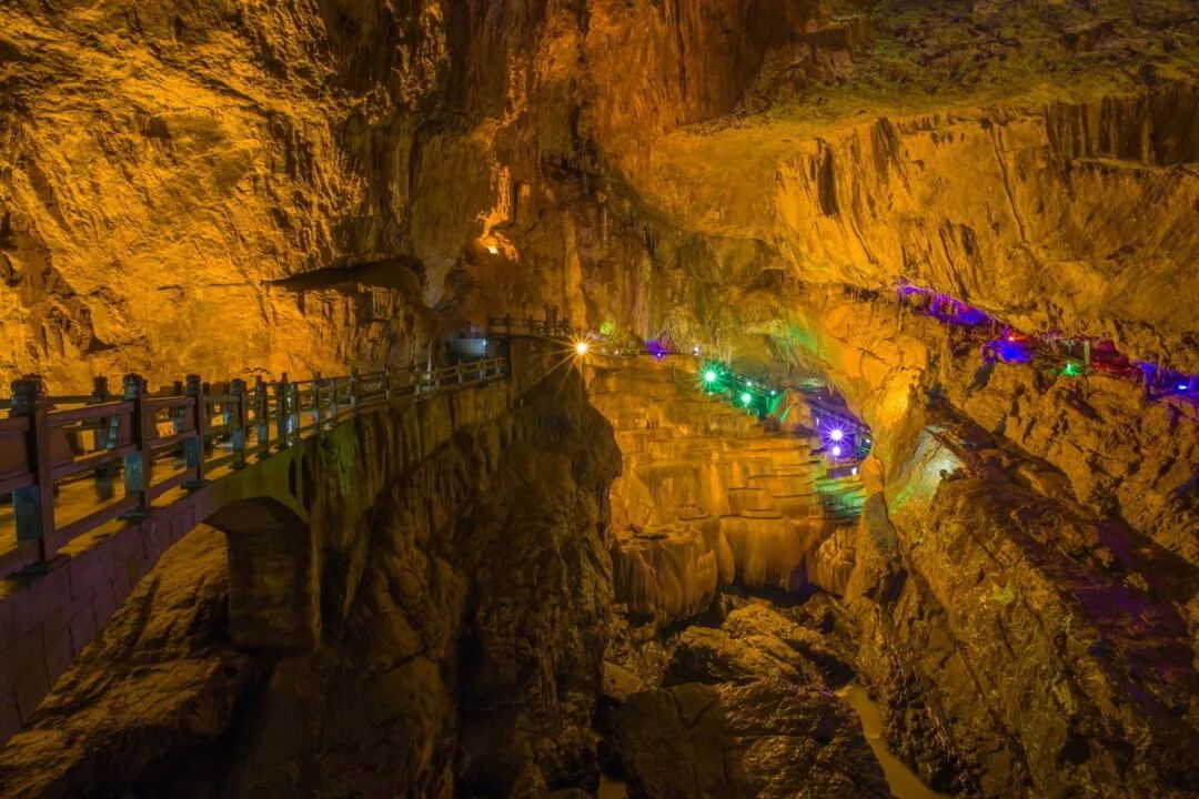 從新加坡出發前往昆明,導遊接機後前往石林,參觀九鄉溶洞風景區【單程索道+遊船】,堪稱世界奇觀,其形成的機理就是由於強烈的喀斯特作用。巨大的洞室、洞穴系統是地表水利地下水溶解碳酸鹽巖的結果,而洞穴中堆積的色彩斑斕的鈣華堆積,則是地下水中碳酸鈣沉淀堆積的結晶。