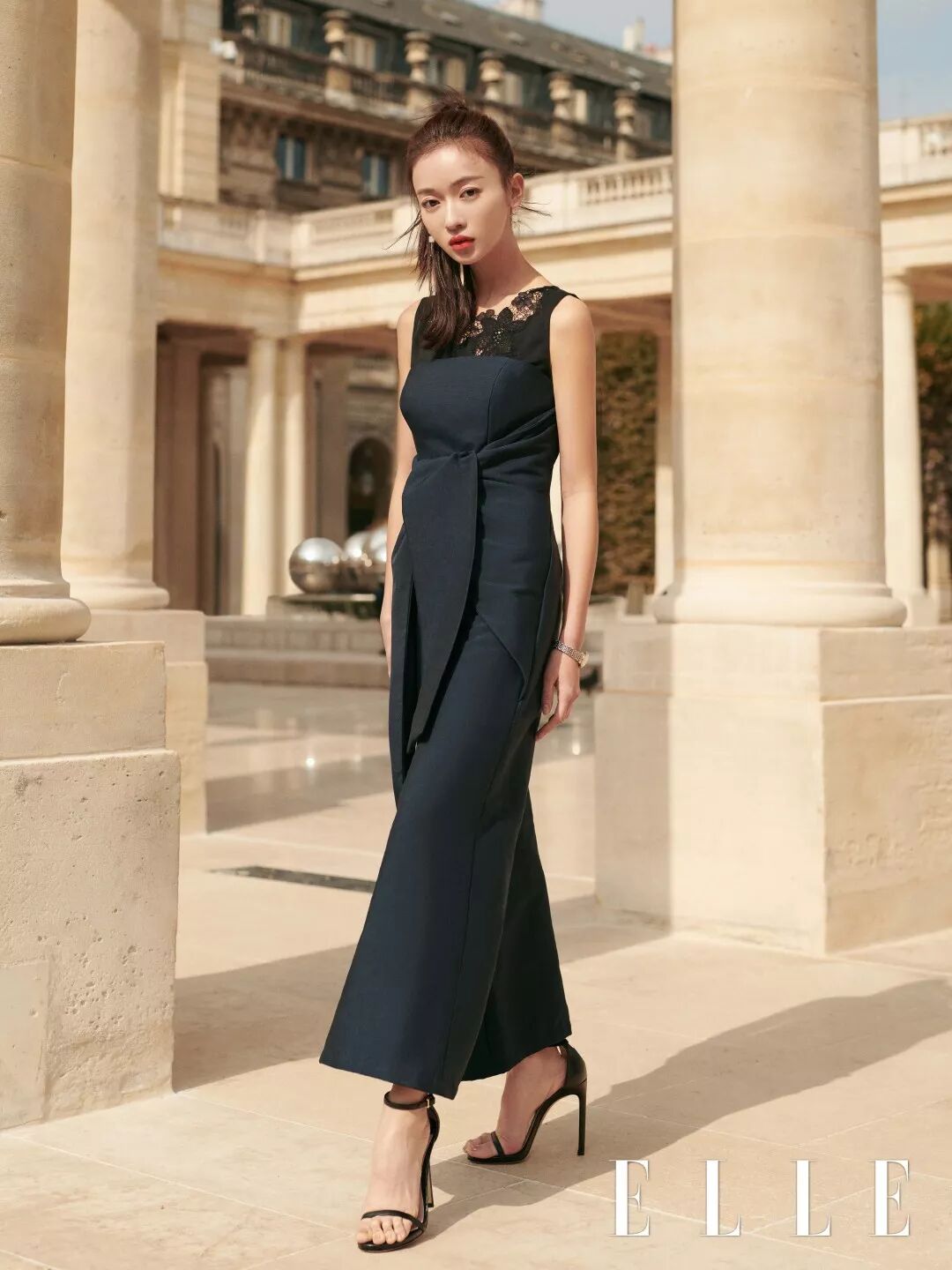 勇於嘗試不同的謹言與這一切又十分契合,在其舞蹈功底加持下的姿態美,一字帶高跟涼鞋是永遠能夠讓優雅與氣場全開的百搭單品,瞬間融入老式巴黎的瞬間,仿佛有一段無盡的故事訴說。