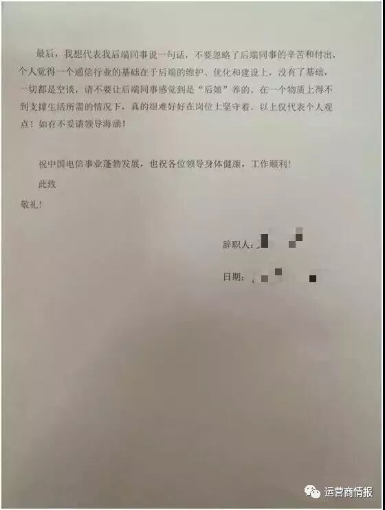 這份辭職報告中反映的不僅是電信後端員工的狀態,也是通信行業員工的一部分真實情況。
