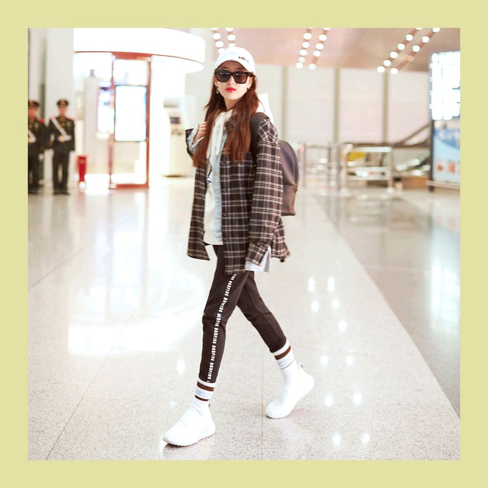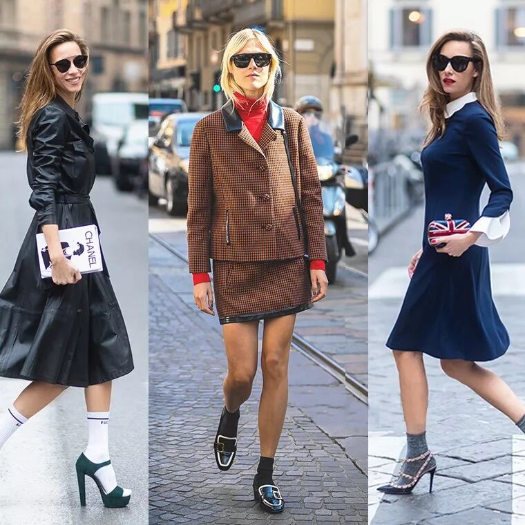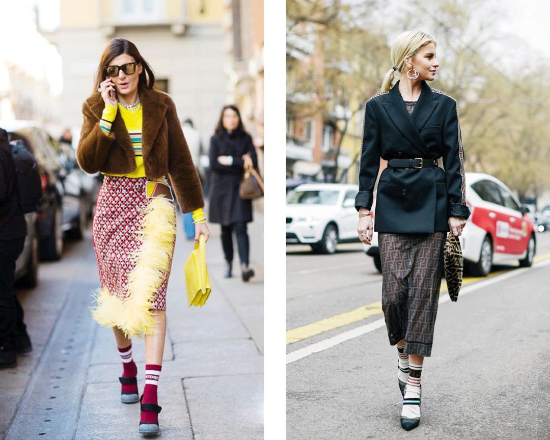 現在最流行的就是運動風的條紋達瓦配高跟鞋,有一種不和諧的美感。只要兩者顏色契合,基本就不會出錯。