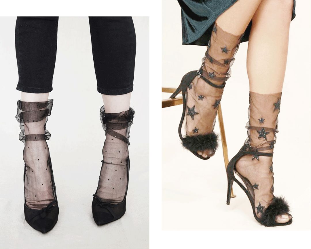 除了純色的款式,這種帶一點設計感的雪紡襪也值得嘗試。你想穿出赫本的復古時尚感,挑波點雪紡襪,你想變成仙女本仙,那試試星星裝飾的雪紡襪。