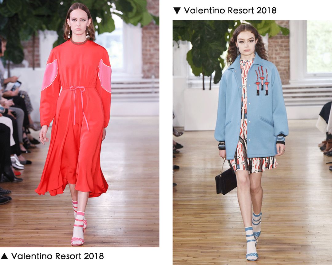條紋襪和涼鞋一起穿,更多的是考驗你的配色功底。最保險的肯定是搭配同色系涼鞋,適合演繹青春少女風格的造型,你想看真人示範的話,整個Valentino 2018早春秀上都是。