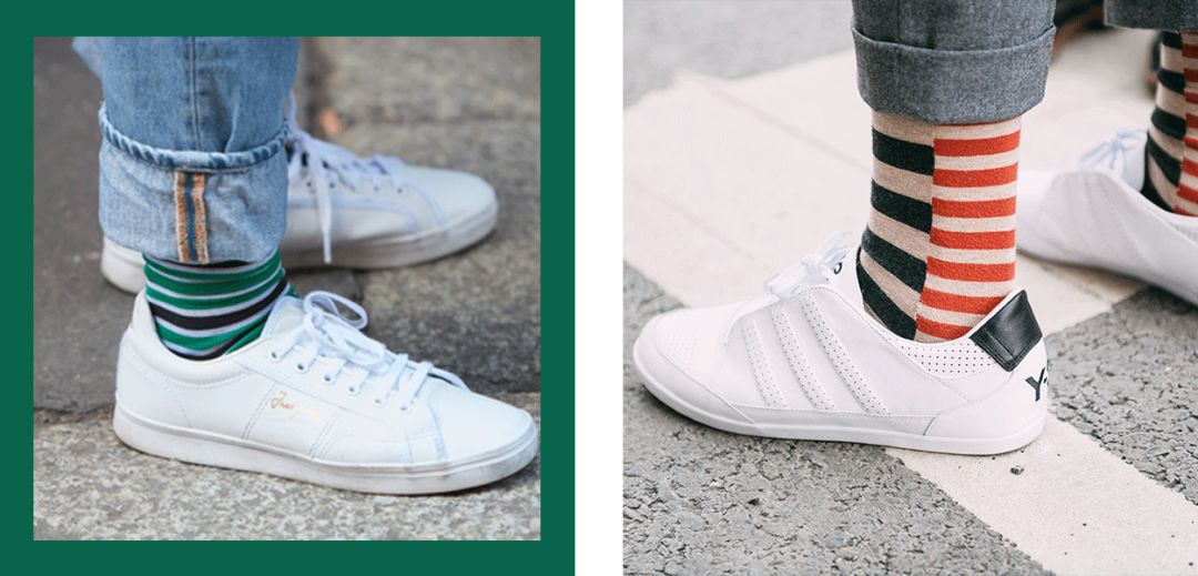 條紋襪是「露襪子」穿法里最不出錯的一種,沒有那麼誇張,不會擔心太高調而出不了門。最常規的搭配就是運動鞋+條紋襪。準不會錯。