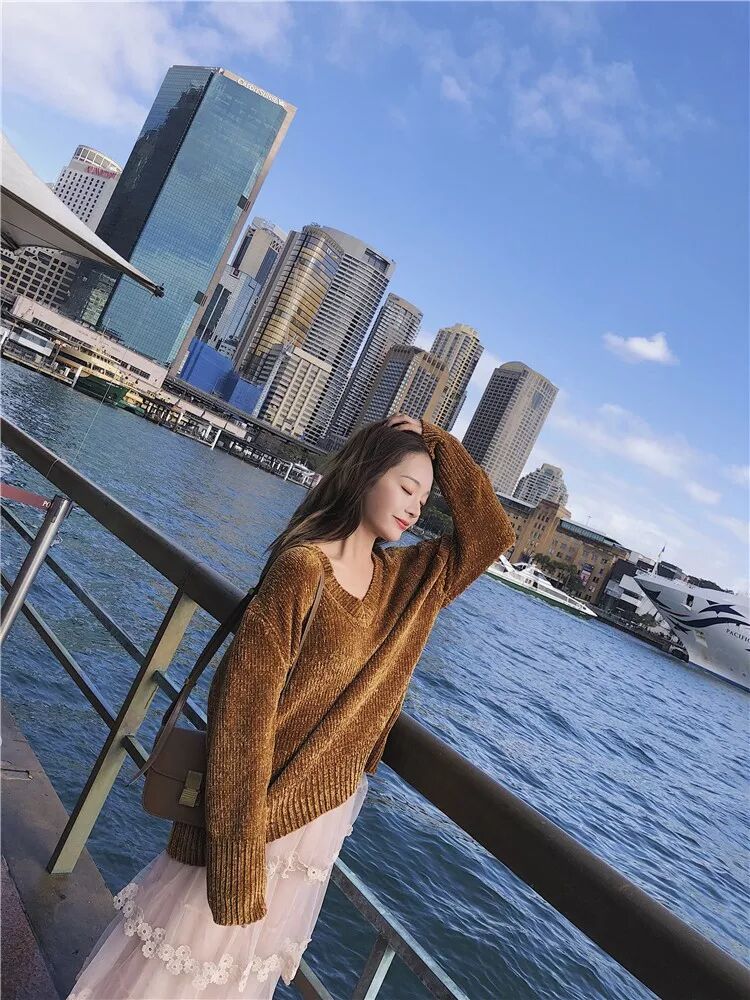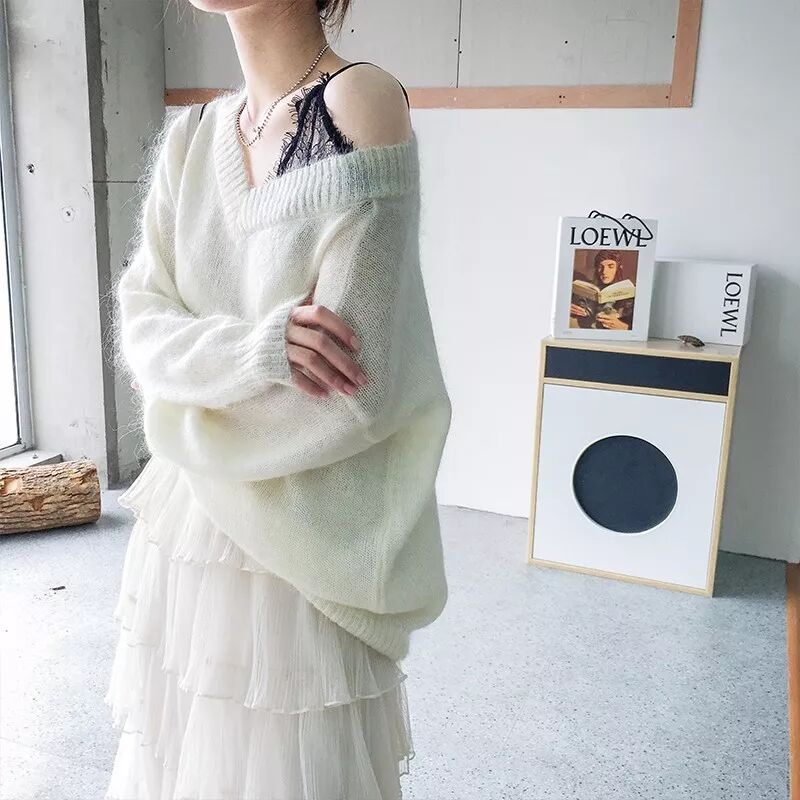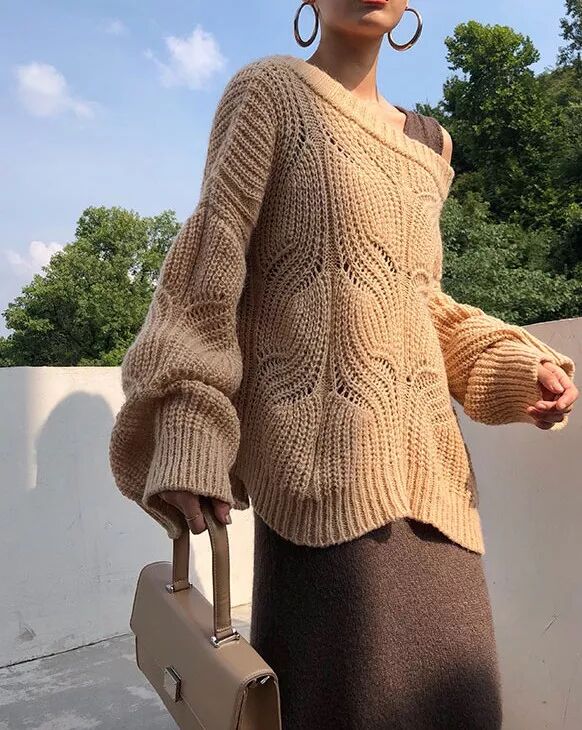 覺的日常的套頭針織沒有太大新意的,不妨試試V領或者一字領套頭針織,側向一邊,露出一點點肌膚玩轉穿搭。