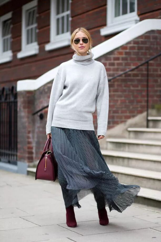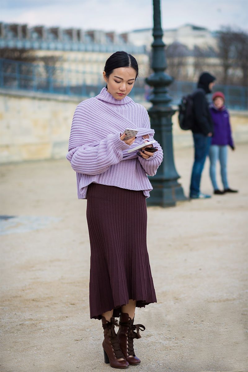 那對於實在是怕冷的女生,也可以完完全全選擇高領套頭針織+裙子,保暖時髦度都要!