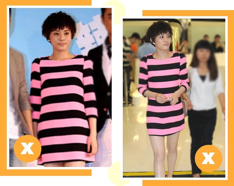 這件條紋直筒裙更是讓她看起來臃腫了不少