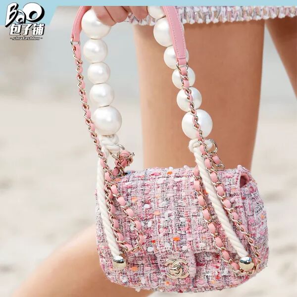 除此之外,此次Chanel還推出了不少毛茸材質的包袋,加入珍珠肩帶,夏日感十足!
