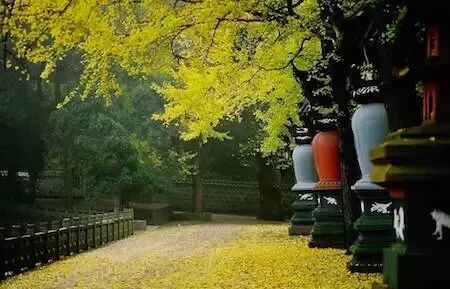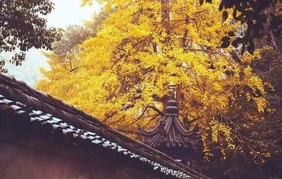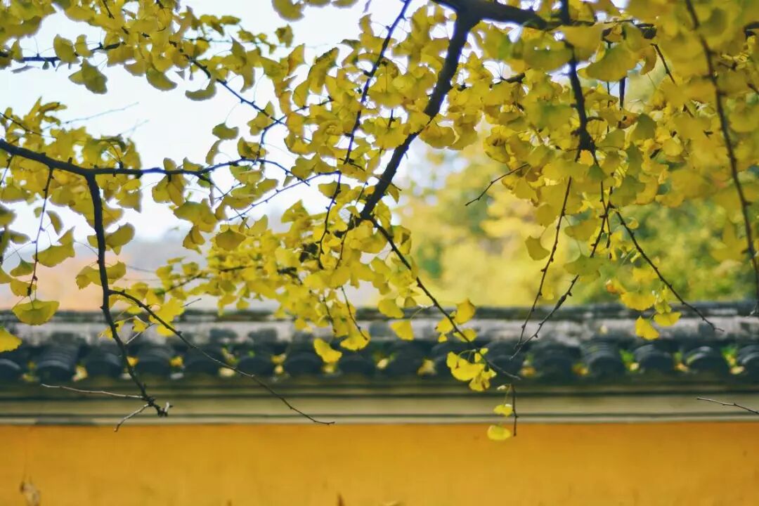古剎紅牆映黃葉,古寺銀杏已醉人。銀杏葉用它溫暖的黃,撫摸著古剎內外歲月的滄桑印記……