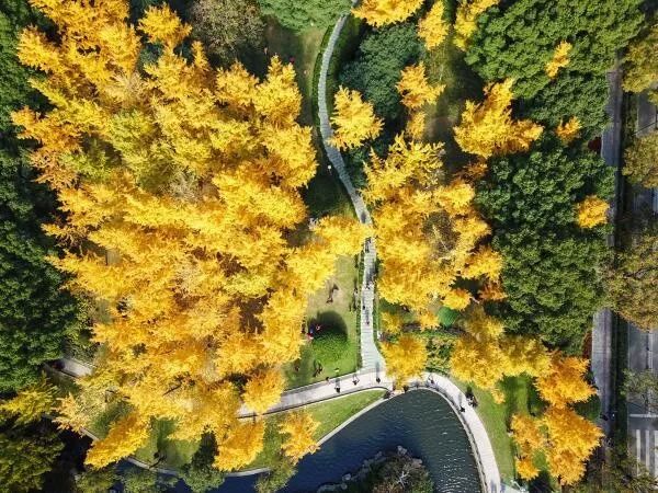 滿地銀杏葉斂去了城市的喧囂,漫步在此,多了幾分悠閒和靜謐。