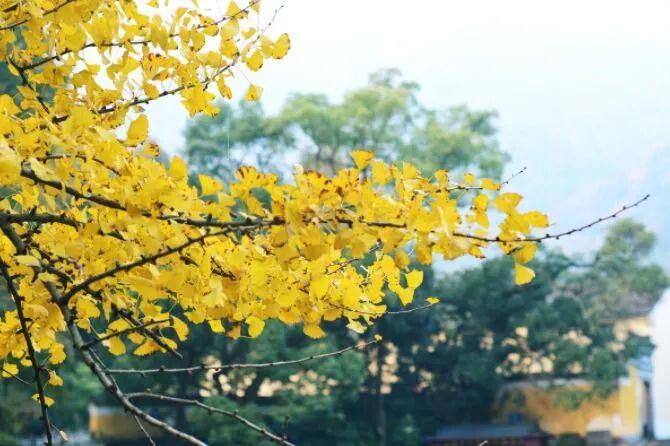 古寺中銀杏亭亭玉立、格外端莊惹眼;無論是枝、是葉都顯得標誌又秀麗、謹慎而不張揚。