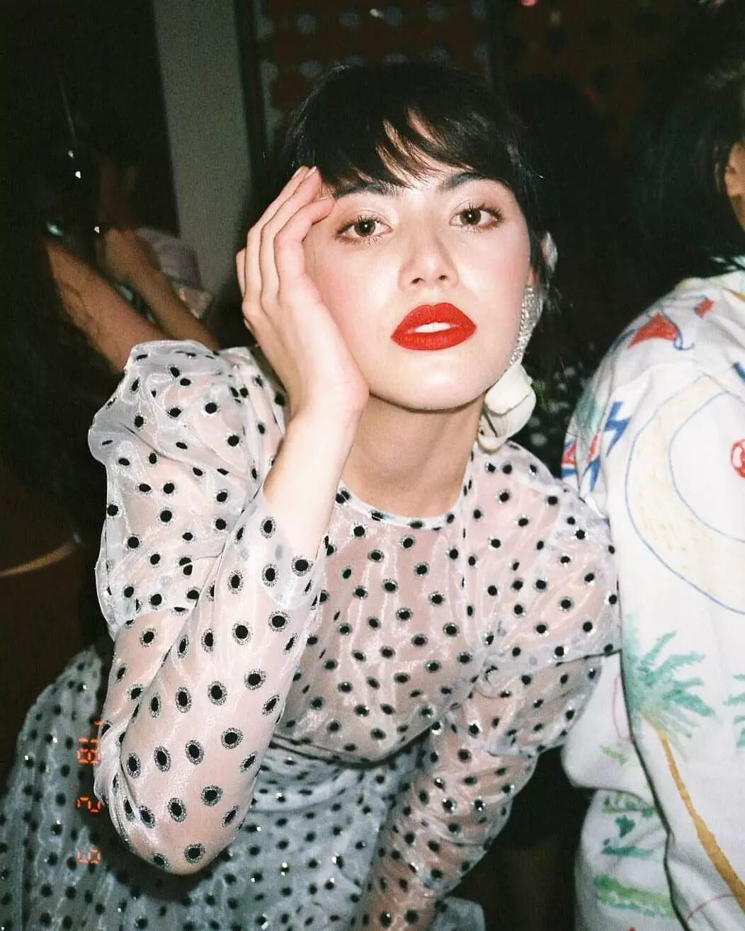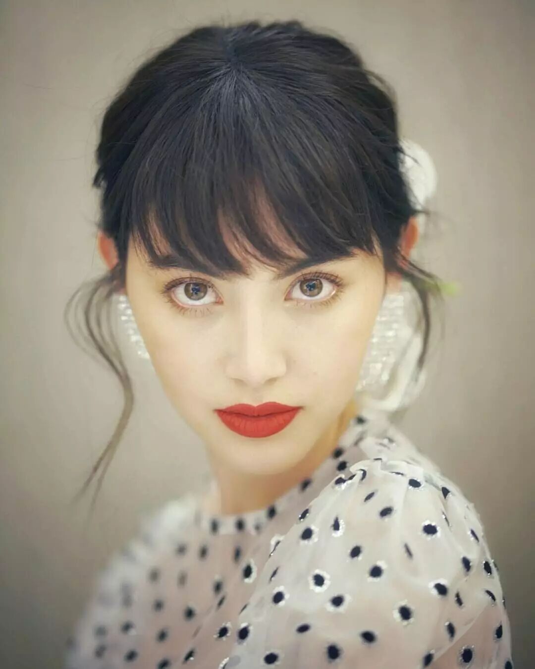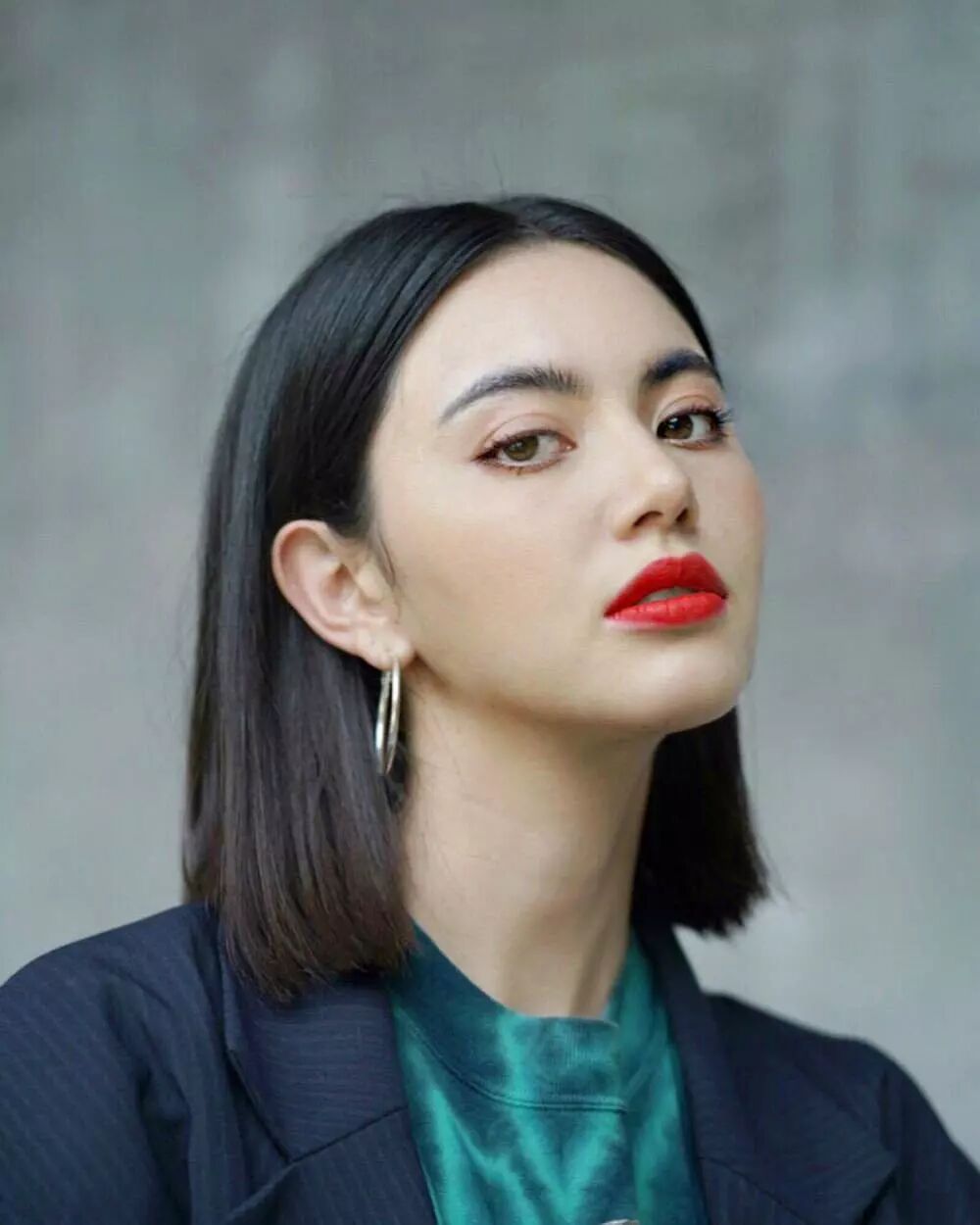 她真的非常適合紅唇的造型,因為把五官的精致都凸顯出來了。