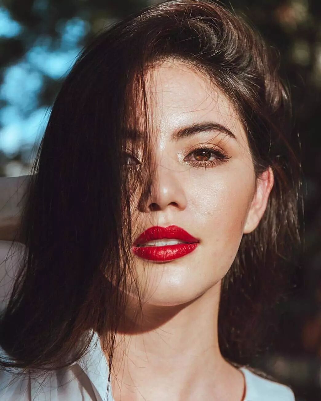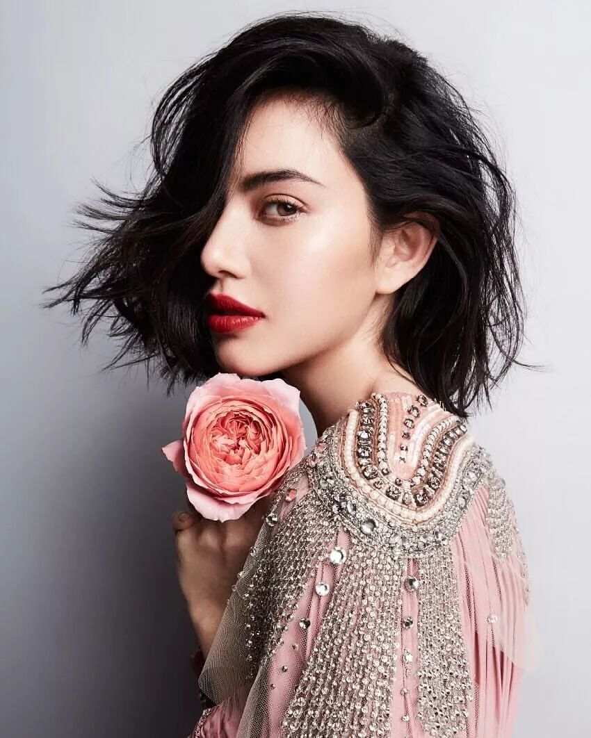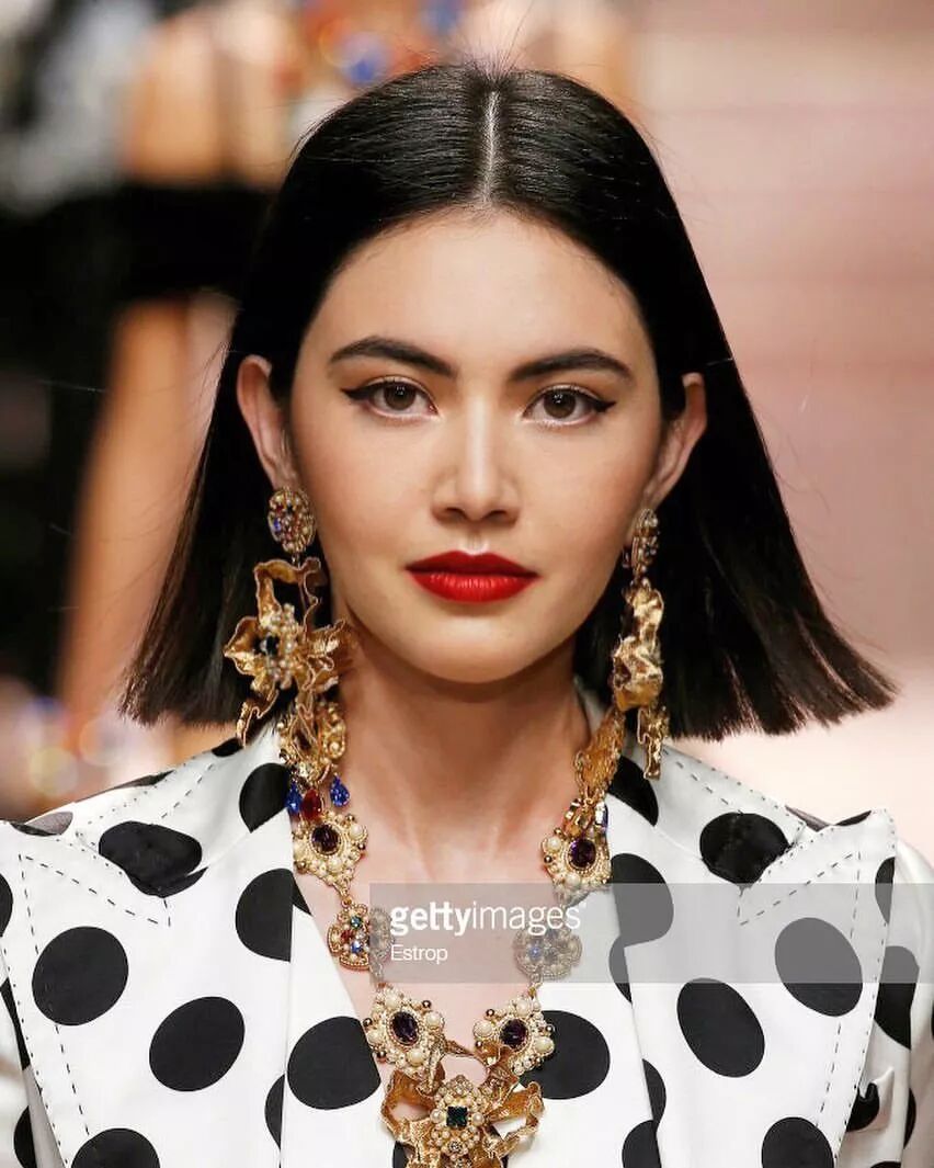 她真的非常適合紅唇的造型,因為把五官的精致都凸顯出來了。