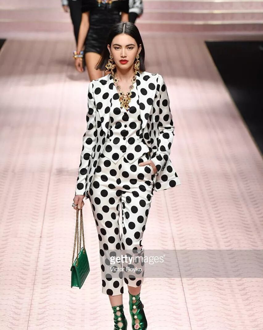 正巧這次米蘭也是波點的套裝,是不是剛好穿了她擅長的東西~
