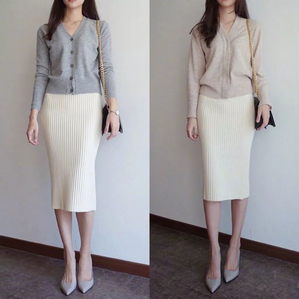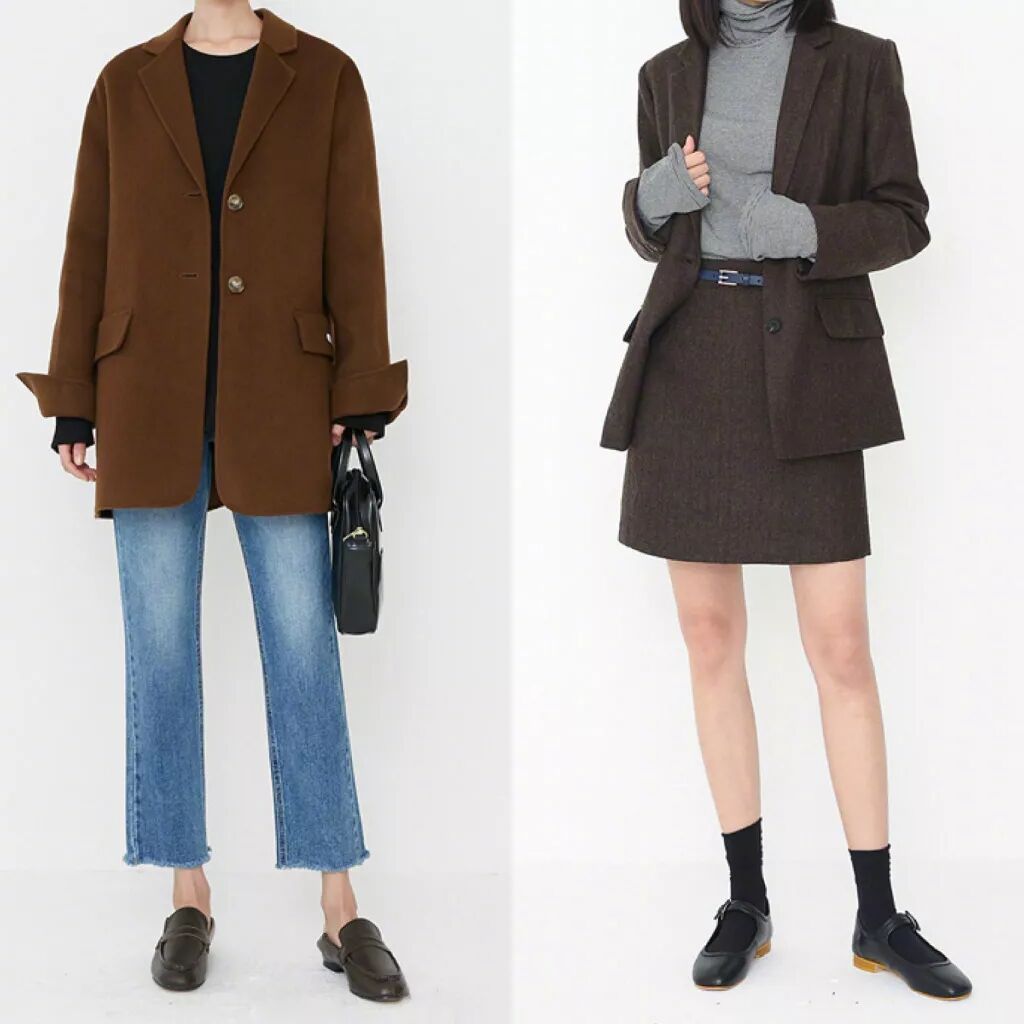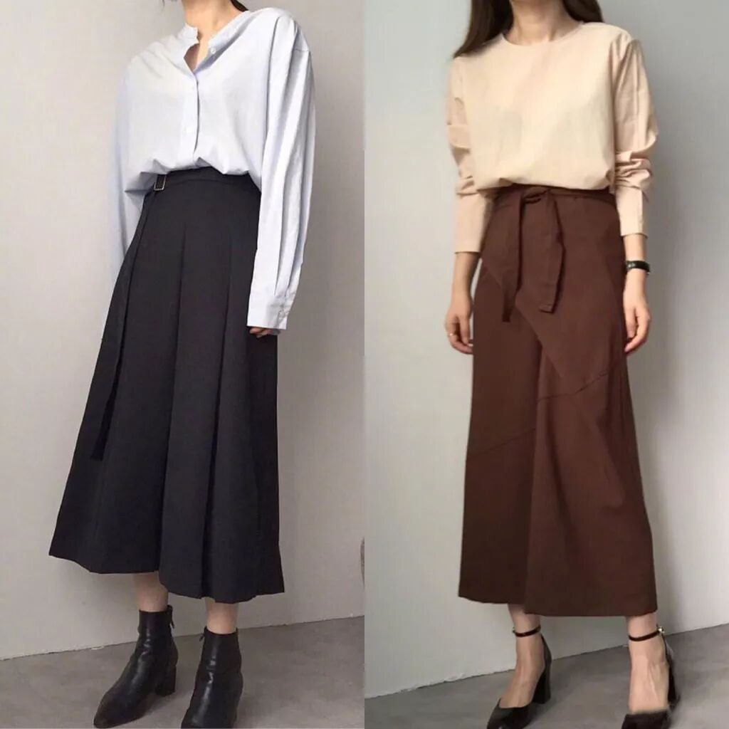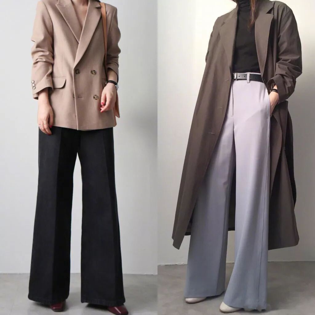 下裝半裙和闊腿褲是重點,搭配針織衫西裝風衣,實在強。