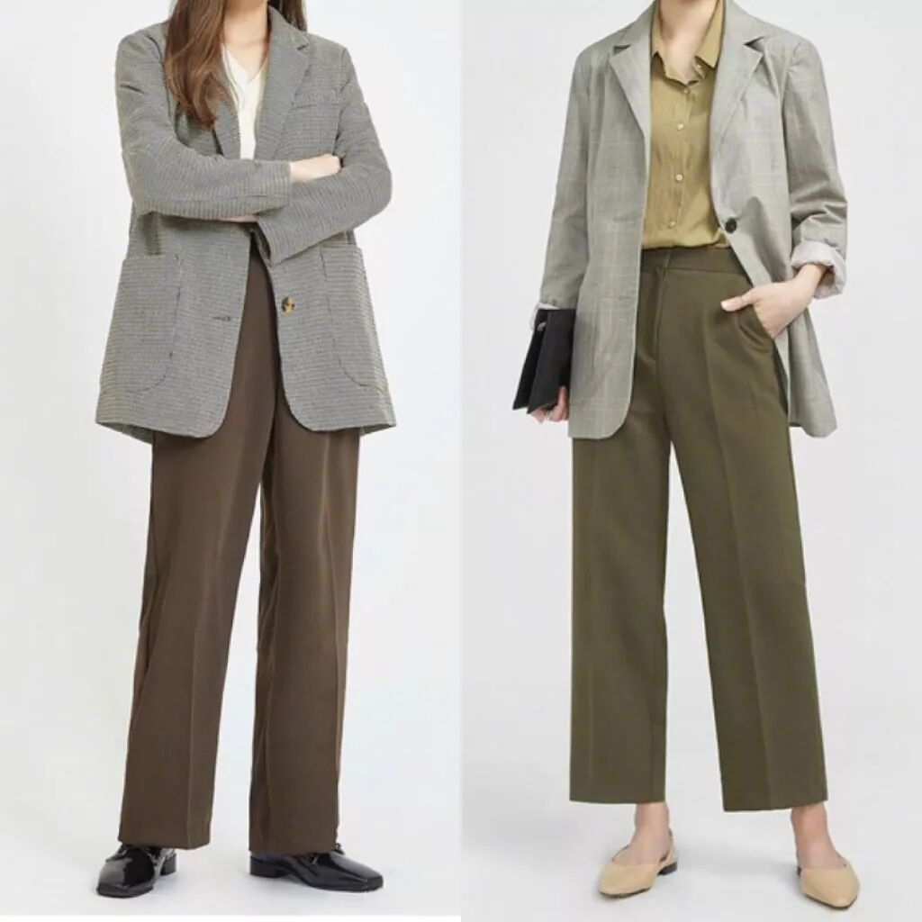當然,除了標配的西裝和闊腿褲,還有西裝馬甲、直筒褲、煙管褲。