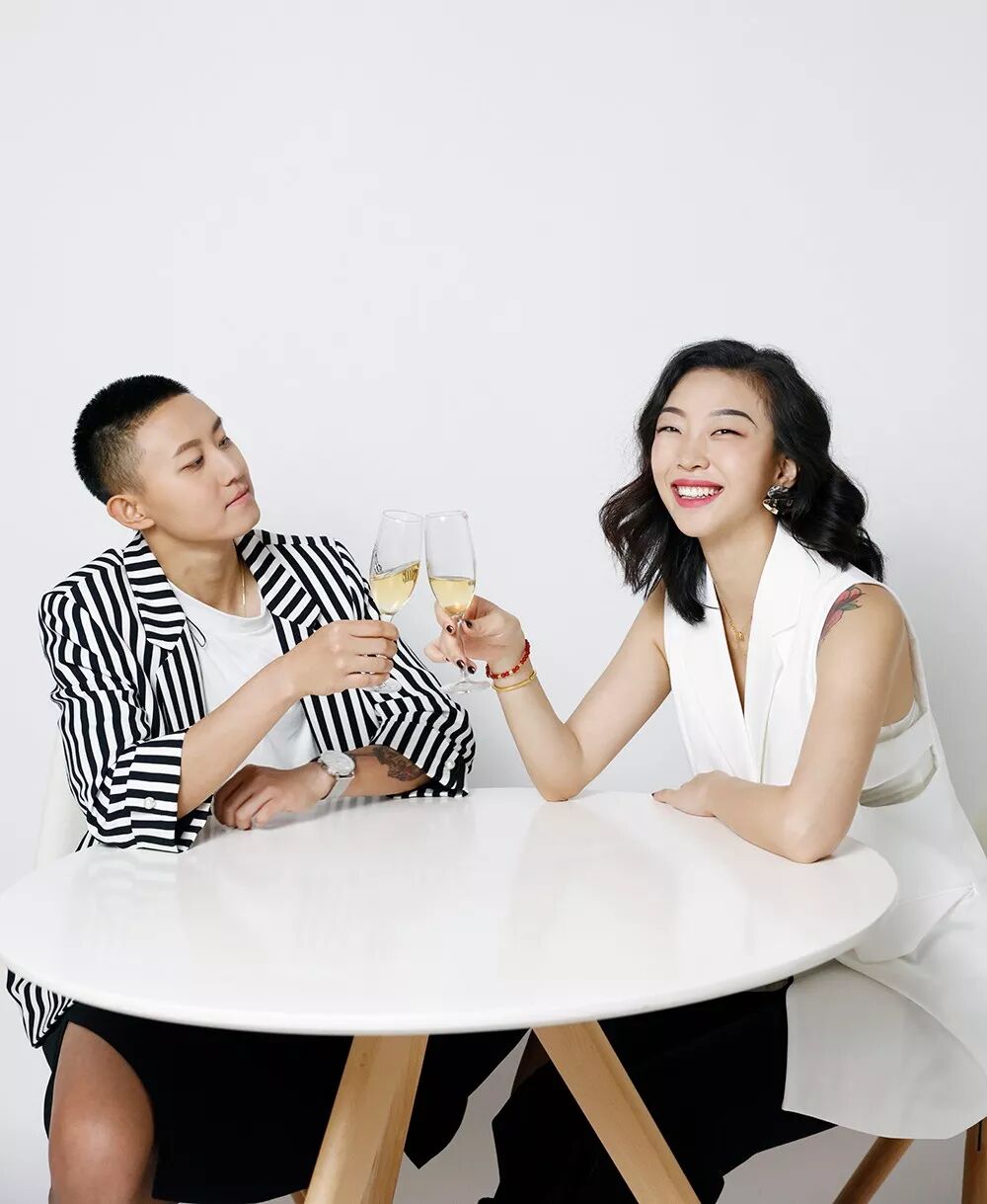 平時也是「相愛相殺」的路子,Kimi說起她們周年紀念日時,嘴瓢說成了周年慶,之後的拍攝過程中,蜜兒一直念叨Kimi心里只有店沒有她,Kimi沒否認還老拿這碴開玩笑,