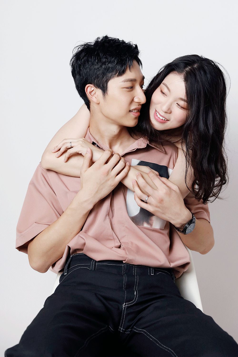 在拍上一套Look時,這對新婚夫妻像得了婚紗照後遺症,姿勢很沙龍,