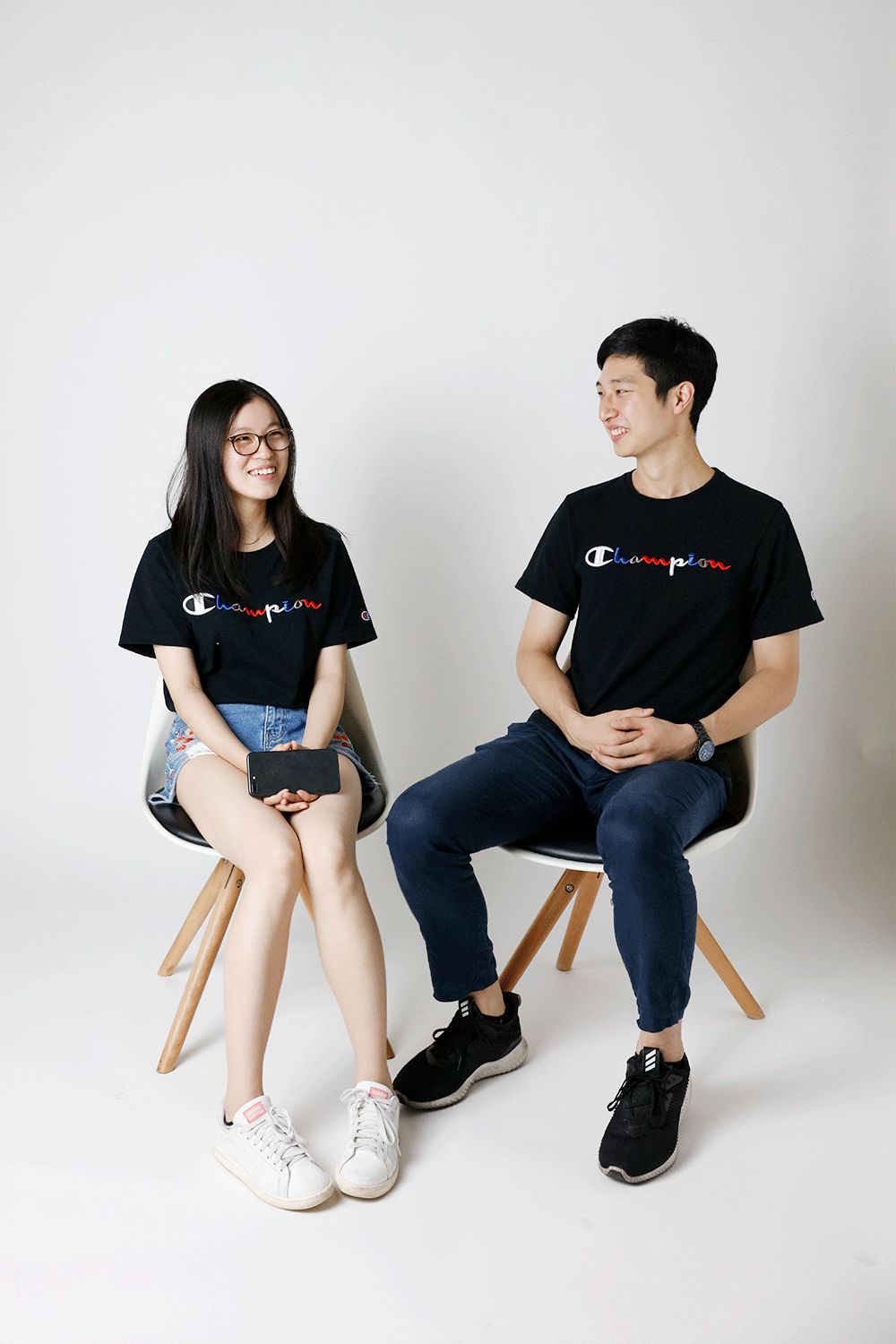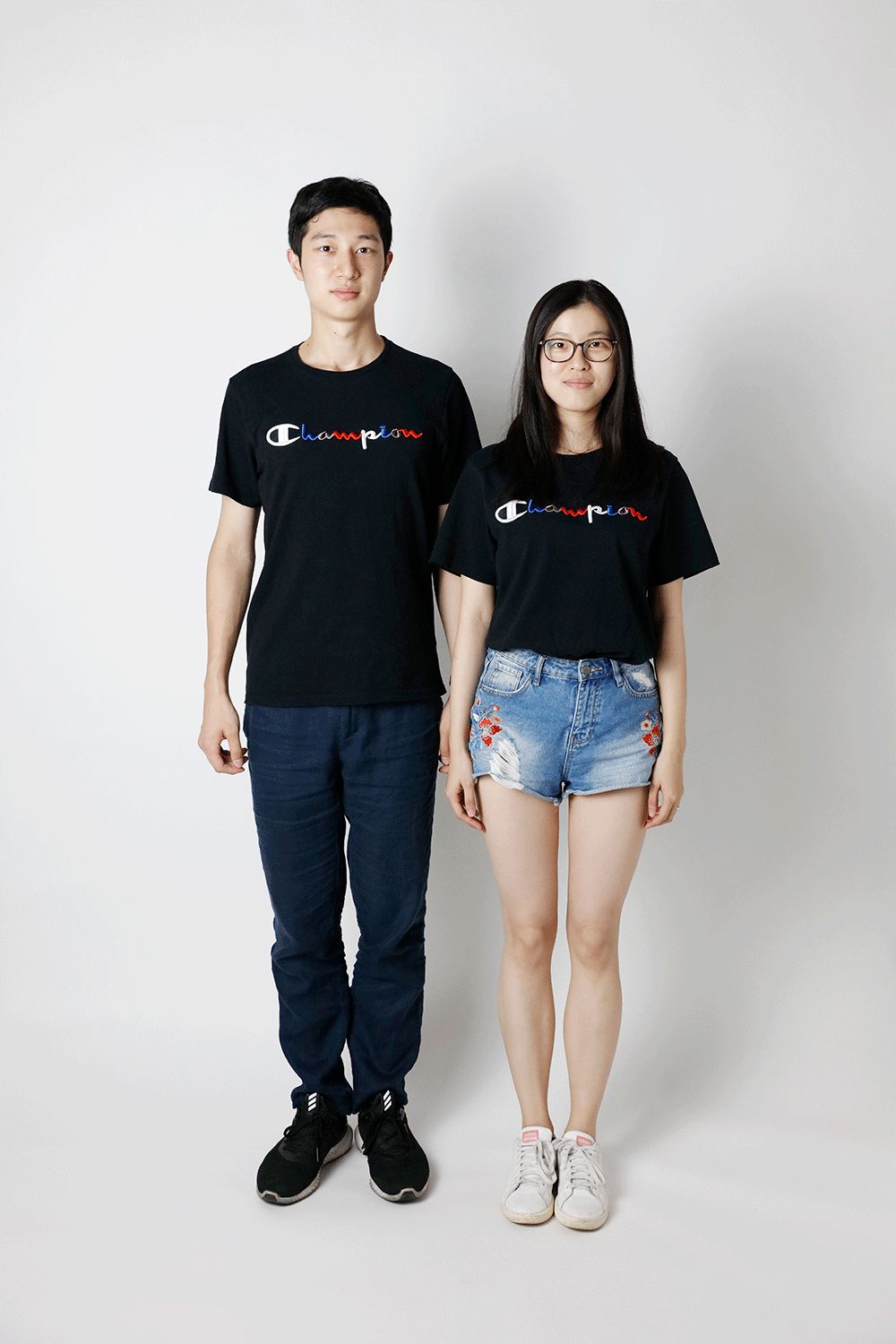 第一對情侶一走進來,就用自己的穿著當仁不讓地告訴宇博「咱倆是一對」,同款的Logo T恤搭配簡單的牛仔褲,把他倆丟在今天馬路上的情侶堆里絕對找不著,