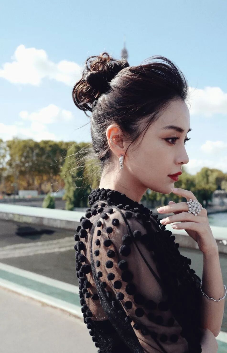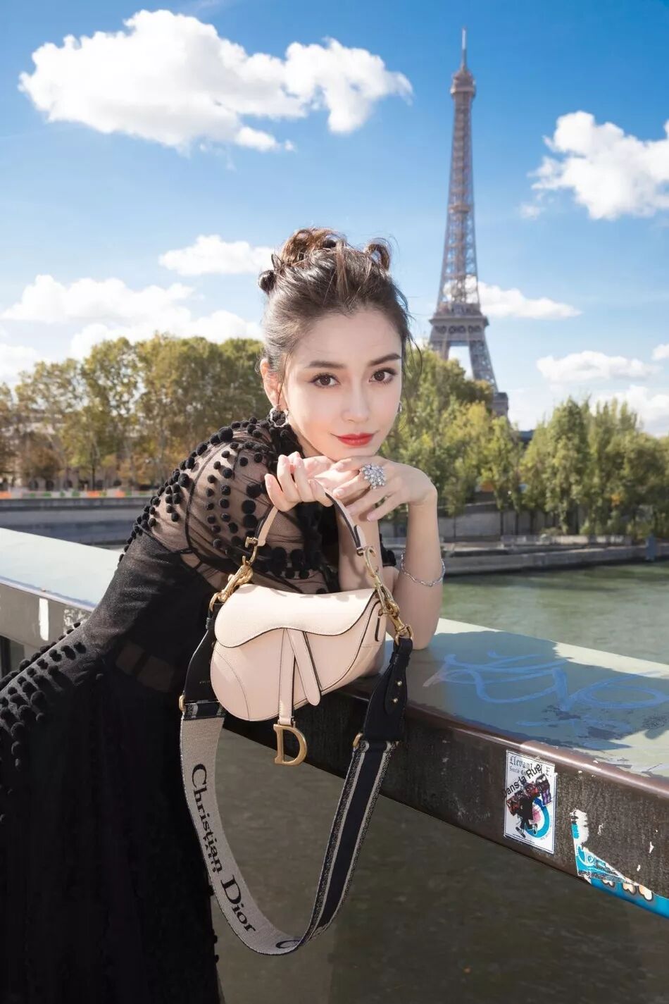 妝容是一貫的精致,風格也是一如既往的仙。Angelababy這身Dior的小黑裙摩登雅致,胸前有一顆由小絨球點綴而成的巨大愛心。