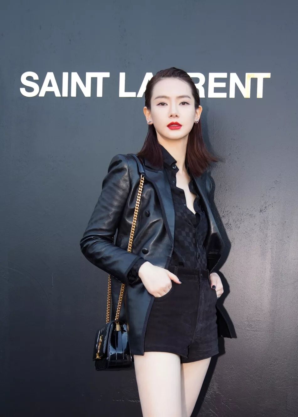 國際超模的何仙姑此次參加了Tom Ford的春夏秀場,這套灰色西裝硬朗幹練,十分符合品牌本身的調性,搭配紅唇更是氣場全開。