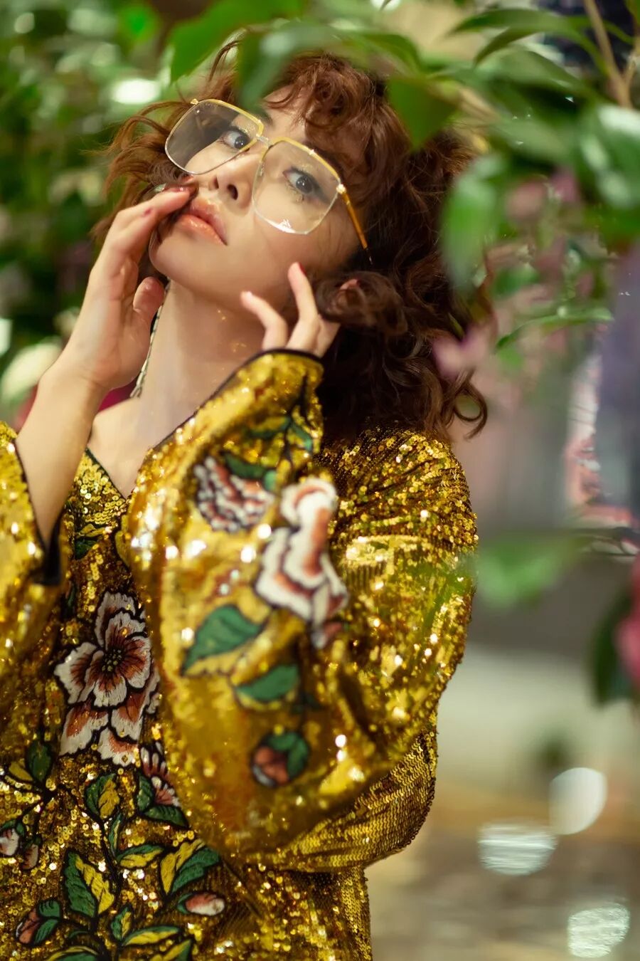 從耳環到服裝再到高跟鞋,沒有一處不在閃耀著奪目光彩。再搭配她的凌亂短捲髮和冷冽的深情,如同一只桀驁不馴的小野貓。