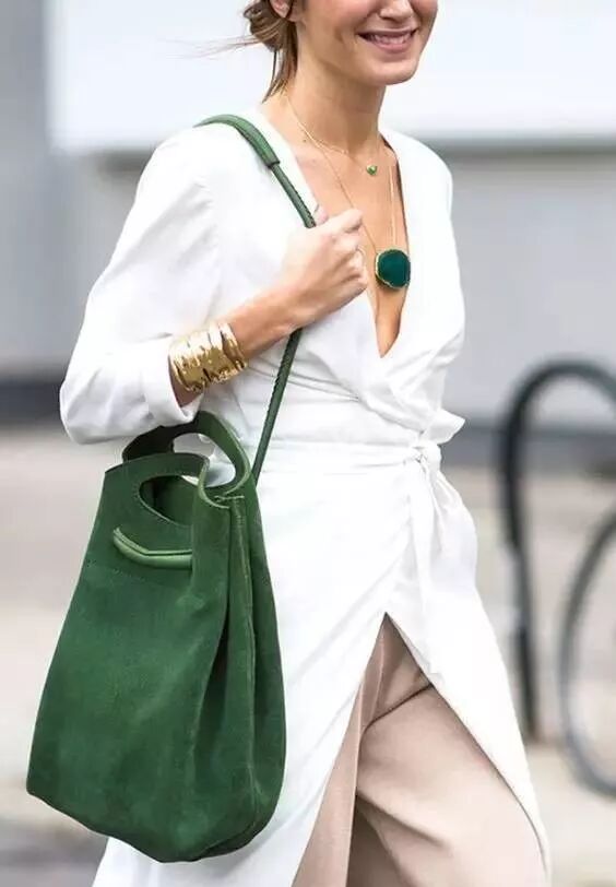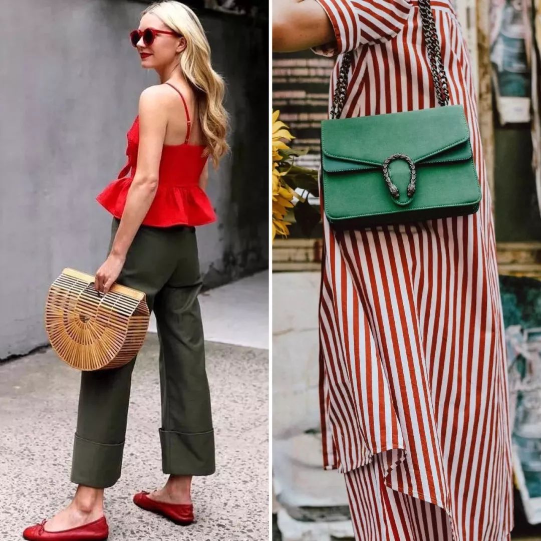 對於搭配新手而言,最穩妥的還是選擇一種顏色進行小範圍撞色。像用紅色的包包來與綠色連衣裙玩撞色,就已經足夠出彩。