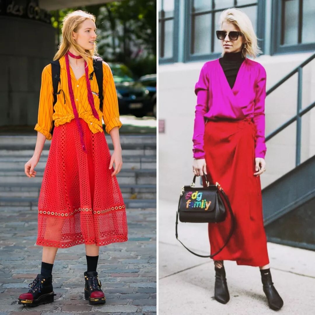 紅配綠也是非常經典的撞色搭法,醒目時髦極了。