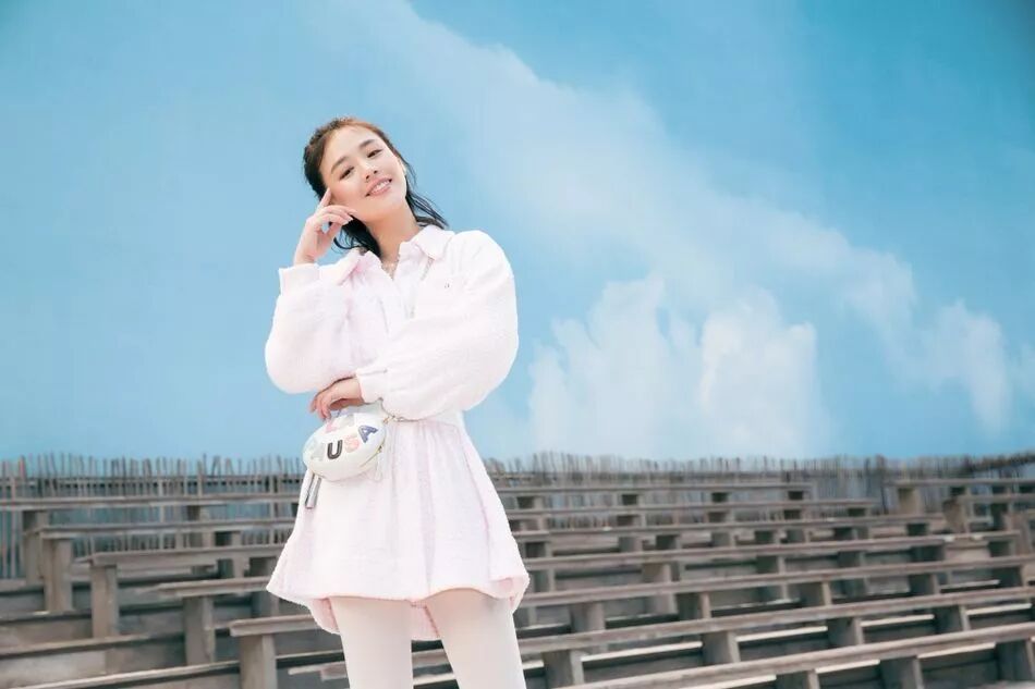 馬思純雖然沒有苗條雙腿,可人家照樣很偏愛超短連衣裙,白皙膚色,讓自己有些微胖,搭配一雙玫粉色高跟鞋,女人味十足。