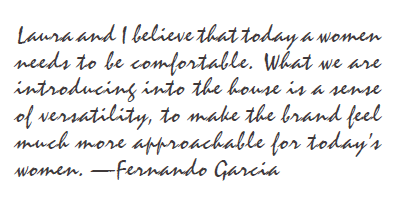 L:Oscar先生很早之前就告訴過我,將會有一名來自多米尼加的男孩要加入我們。當時我為度假系列忙得焦頭爛額,沒有記住這件事。當Fernando出現在試裝室中,坐在我的位子上時,我的第一反應是那是誰?(笑)