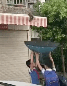 馬上撐開手里的傘在下面接著