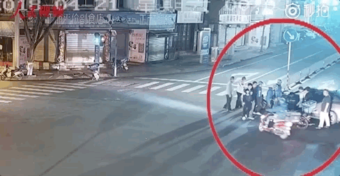 多名外賣小哥和路人合力抬車